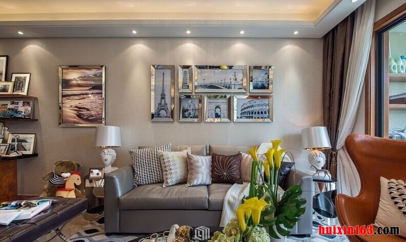 客厅中石膏板吊顶上安装了一盏圆形的吸顶式水晶灯,水晶吊坠在灯光的照射下显得更加晶莹剔透,光束折射出的花纹打在墙壁上,形成了另一种装饰,非常的唯美,吊顶四周做了夹层设计,并在中间安装了一圈黄色的灯带,为客厅增加了光源,也使装饰显得更加温馨,由于本套房屋是一家三口在居住,所以设计师做了儿童房的设计,儿童房内的石膏板吊顶中间安装了一盏造型别致宛若工艺品的吊灯装饰,增加了美感也更吸引儿童的目光,床头背景墙上粘贴了带有卡通图案的壁纸,比较受儿童喜爱,但房屋中最独特的设计是一扇飘窗,白天可以有阳光的照射可以使房间多一份阳光的味道,也多一份温馨。