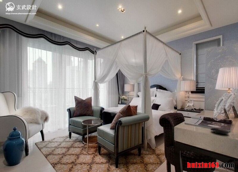 本套房屋装饰主要是以白色为主,客厅中的石膏板吊顶上么有多余的造型设计,只是在四周的圈边处做了简单的设计,是吊顶可以显得更加大气,沙发背景墙上的设计亦是如此,简洁却又不失风度,一款白底带有蓝色花纹图案的沙发靠墙而放,上面搭配了几款色彩不一的抱枕,为客厅空间提供了一个温馨的休息空间,同时这样素雅的设计业与本套房屋装饰相符,一款钢化玻璃材质的茶几摆放在客厅中间,时尚的造型更能突显出现代装饰的设计感,一款深棕色带有白色花纹的局部地毯装饰着客厅的地面,是装饰布局显得更加紧凑,从而带给人们一种温馨感,也是现代房屋装饰中不可缺少的一项元素。
